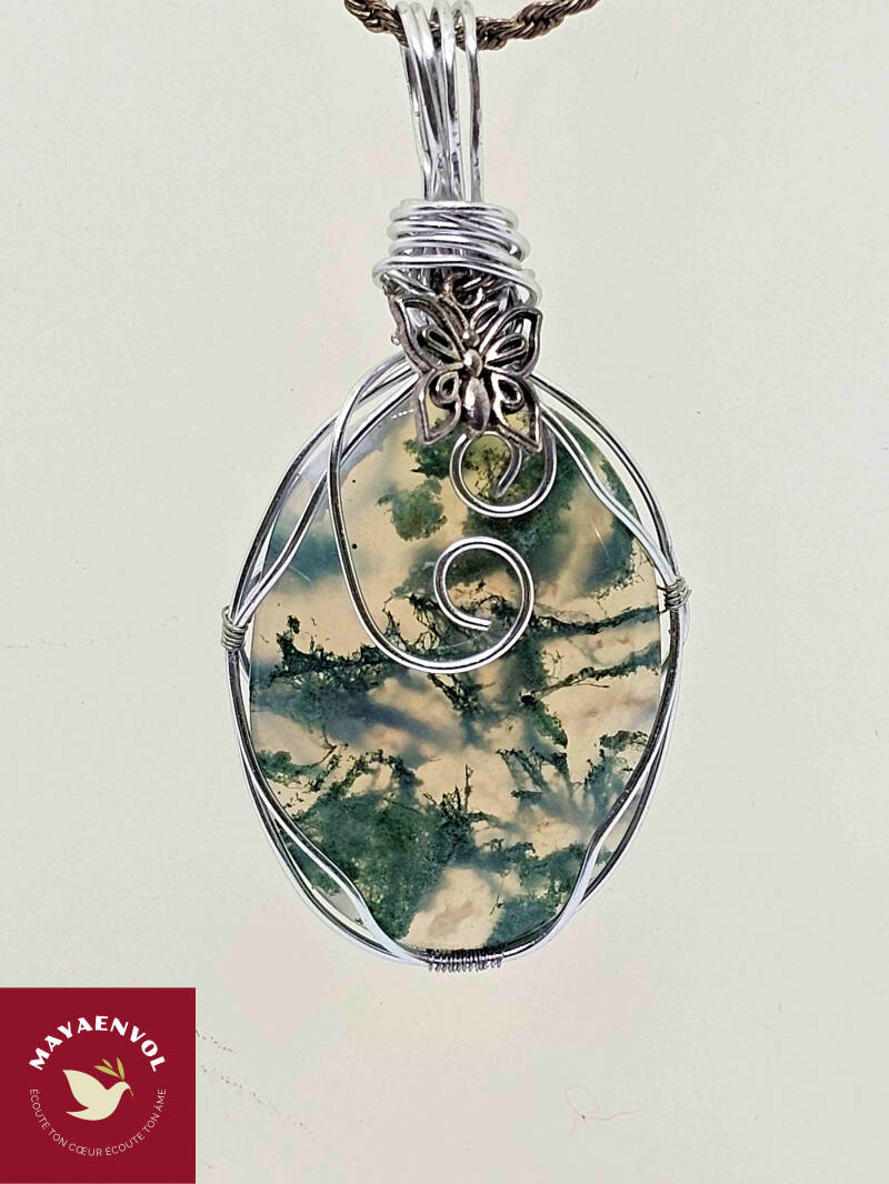 Sublime ! (pas d'autre mot) pour cette belle agate mousse montée en technique Wire Wrap datant de 2000 ans avant J.C., n'utilisant ni colle, ni soudure.