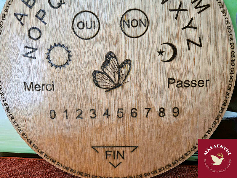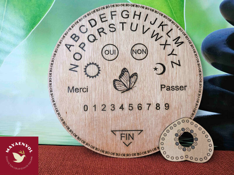 Ouija rond en bois de 36 cm de diamètre et 6 mm d'épaisseur avec sa goutte